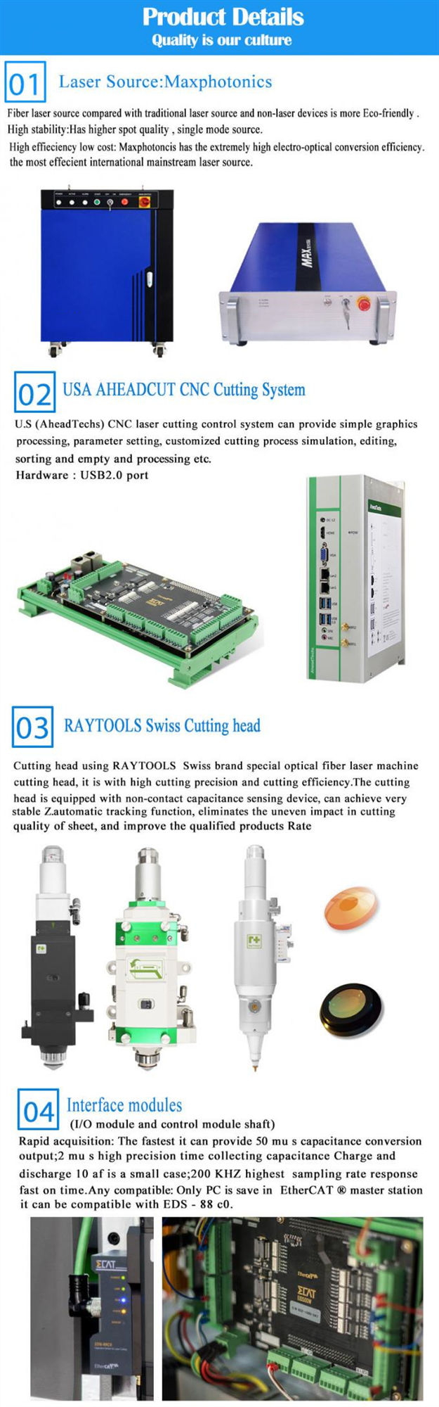ఈ యంత్రం దిగుమతి చేసుకున్న ఫైబర్ లేజర్, నేచురల్ గ్రానైట్ బేస్, దిగుమతి చేసుకున్న సర్వో మోటార్, హై ప్రెసిషన్ క్రాస్ ప్లాట్ఫాం స్ట్రక్చర్తో ఉంటుంది.